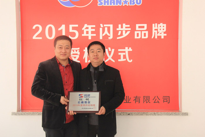閃步品牌運(yùn)營(yíng)官楊存東先生為各省經(jīng)銷商授權(quán)